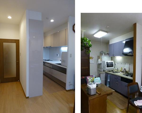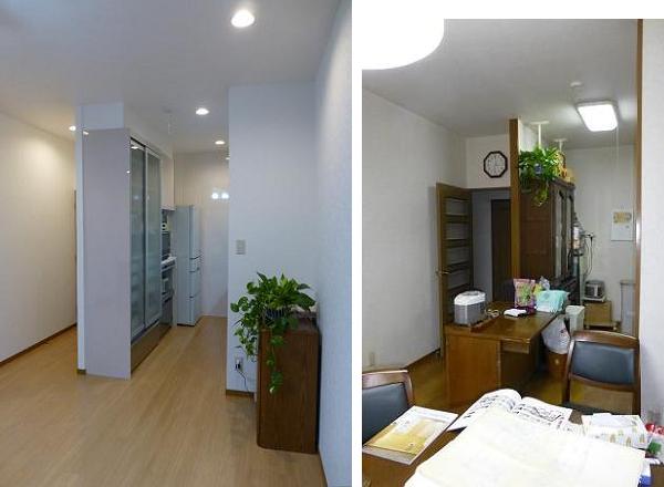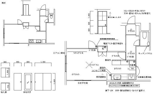 ![]() LDKのリフォームの際、照明器具のリニューアルを提案させていただきました。 LDKの天井には四角いシーリングライト、丸いペンダントライトが 付いていたのですが、キッチンと収納の配置をリフォームで変えるプランでは 納まりが良くなく、ダウンライトとシーリングファンへの変更をプランしました。 LEDのダウンライトを6灯配置、中央にはシーリングファン、絵画を掛ける予定の 壁面の天井にはラィティングレールを設置しました。 リフォーム前と後の画像を比べてみました。 ![]() ![]() システムキッチンはクリナップのSSシリーズ。レンジフードは、ボタンひとつで 内部をクリーニングしてくれる「洗え〜るレンジフード」 大容量で使いやすい収納システムには、電子レンジなどの家電もすっきり 納まりました。 プランです↓ ![]() ![]() |