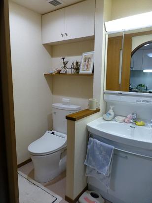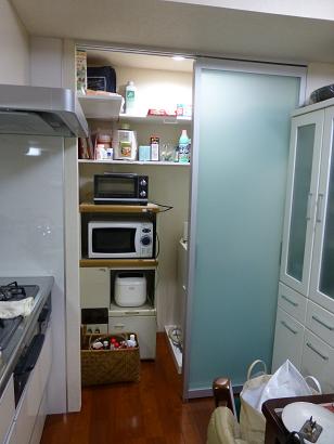 ![]() キッチンにあるレンジ台。 使いやすい配置ですが、見映えは良くありません。 お客様もそれを気にされていて、幾つかのリフォーム会社に プランを依頼されたそうですが、気に入るブランが得られずに 当店にプランのご依頼をいただきました。 キッチンを見させていただいて、キッチン奥の洗濯機スペースに レンジ台を納めるプランを提案しました。 赤く囲った部分を開口してレンジ台に手が届きやすくし、そして必要が無い時は 扉で隠してしまおう!という計画です。 ![]() 当店お馴染みの完成イメージを作成。お客様に仕上りを想像していただき、 無事、契約をいただきました。 ![]() 工事後です。完成イメージ通りに仕上げました(当然・・・ですネ) システムキッチンはクリナップのラクエラ。間口180p。 間口180pのシステムキッチンはコンロとシンクの間が狭くなりがちですが ラクエラは45p以上のスペースを取ることが出来ます。 シャープな印象の扉はアルミ引き戸、三協立山アルミAMISという製品。 上吊式なので、床にレールが無くキャスター付のレンジ台の出し入れも スムースです。 面材が半透明なので圧迫感がありません。 ![]() 引き戸を開けますと以前キッチンにあったレンジ台がぴったりと 納まっています。 レンジ台の上に棚を作りましたので収納量もぐ〜んと増えました。 ![]() 今回の工事は女性一人暮らしのマンションのほぼ全面リフォーム。 トイレの間仕切壁も取り去り、洗面所とトイレを兼ねた広めのスペースに リフォームしました。 工期は20日間、お客様と色々アイデアを出し合ってのリフォームでした。 お客様、当店にリフォーム工事をご用命いただき、まことに ありがとうございました。 |