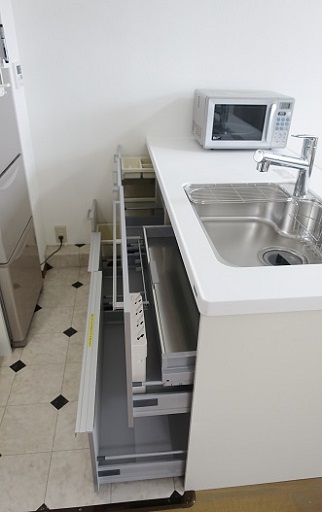 ![]() リフォーム前↓ ![]() 逗子のリゾートマンションのキッチンリフォームの仕事をいただきました。 リフォーム前は、1口電気コンロの小さなキッチンで、 料理は難しかったとのこと。 今回は、シンク部分を独立したアイランドキッチンに改装。 調理機器は、一般的な3口IHクッキングヒーターに変えました。 そして、その横は冷蔵庫スペースにしました。 あと、玄関から室内が見えないよう、ドアを新設しています。 ![]() システムキッチンはクリナップ ラクエラ。 特注対応の幅が広く、ローコストでしかも質感の良いシステムキッチンです。 もちろん、足元まで収納出来るスライドタイプです。 ![]() ![]() 簡単な食事は、この広いキッチンカウンターで済ませられますね。 逗子のこのエリアは、早朝、そして夜遅くまで営業しているレストランが少ないので 本格的な調理の出来るキッチンは重宝すると思います。 ![]() |