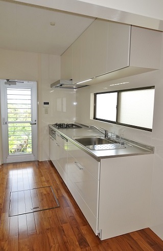 木目が美しく、水に強いチークフローリングをLDKに使いました。