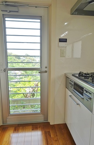 見晴らしの良い立地ですので、勝手口ドアのガラスは透明。